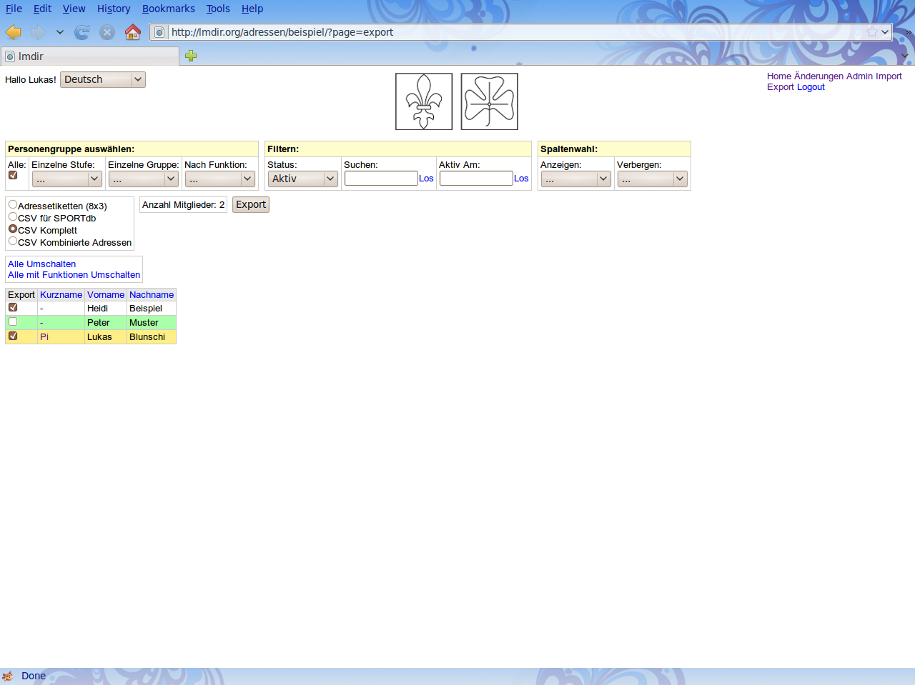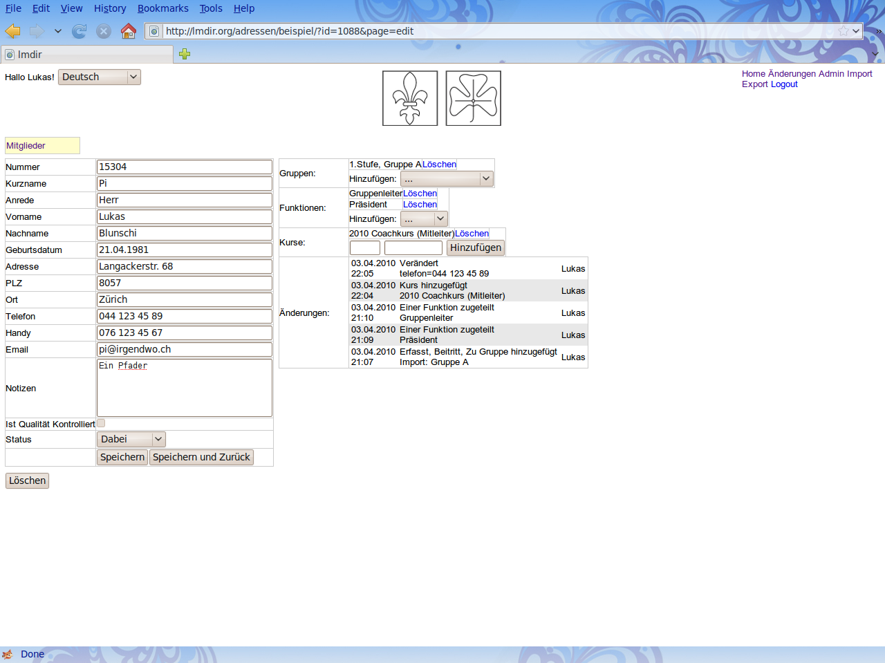 Lmdir ist ein web-basiertes Mitgliederverzeichnis, dass sich speziell gut für kleine bis mittelgrosse Vereine (mehrere hundert aktive Mitglieder) eignet.